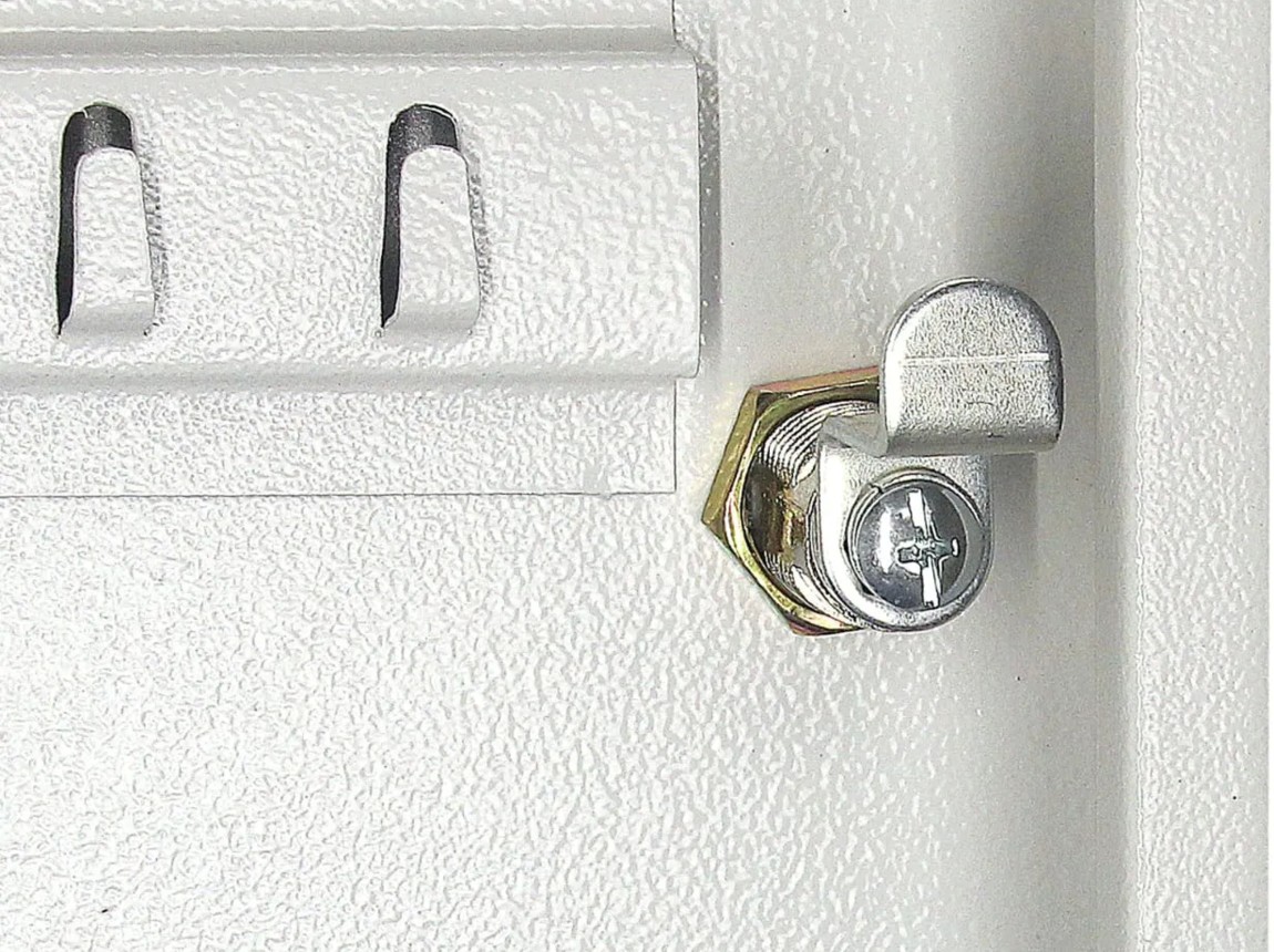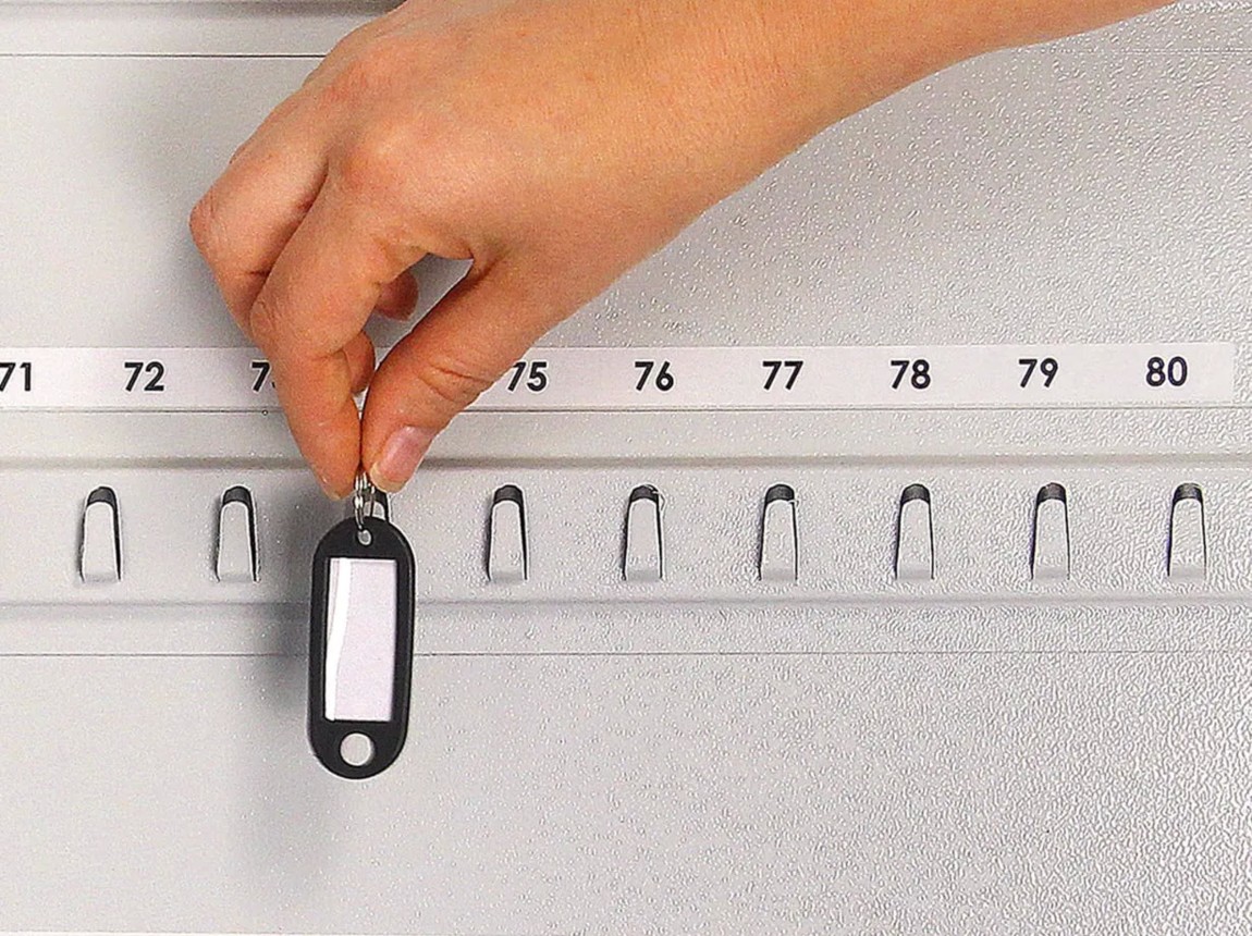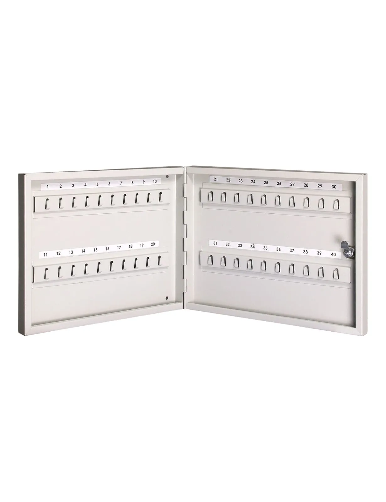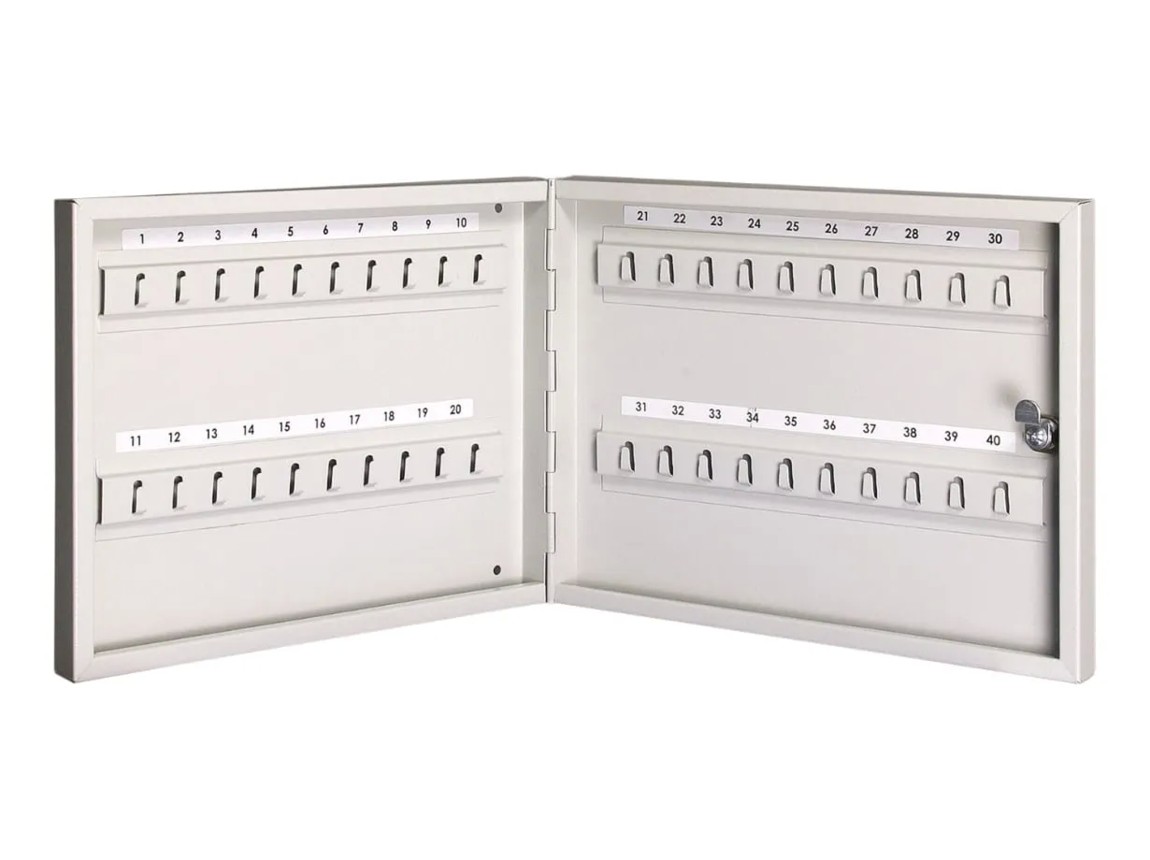 Ключница на 40 ключей представляет собой компактное устройство для удобного хранения большого количества ключей. Ключница комплектуется 4 планками с крючками, что позволяет легко организовать хранение и быстро находить нужный ключ.На задней стенке корпуса расположены отверстия для крепления. В дверь установлен замок типа «Cam-Lock».