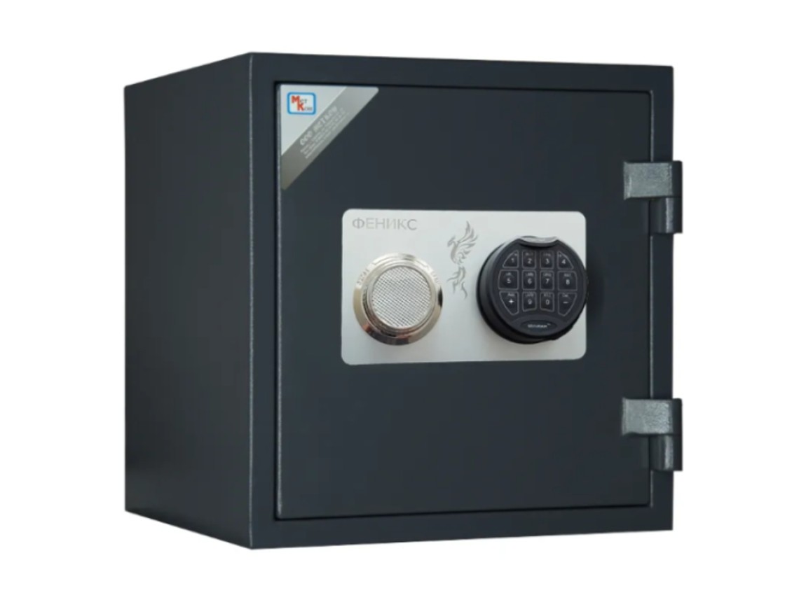 Сейф односекционный Феникс-46ЭБ предназначен для сохранности документов и ценностей при пожаре и взломе. Сейф сертифицирован по ГОСТ Р 50862-2017 класс устойчивости к взлому-I (первый), ГОСТ Р 57384-2017 класс огнестойкости 60Б. Сейф односекционный, оснащен одной съемной полкой . В двери установлен электронно-биометрический замок SecuRam класса "В"